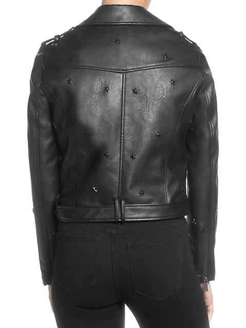 Catherine Malandrino Black Star-Studded Moto Jacket