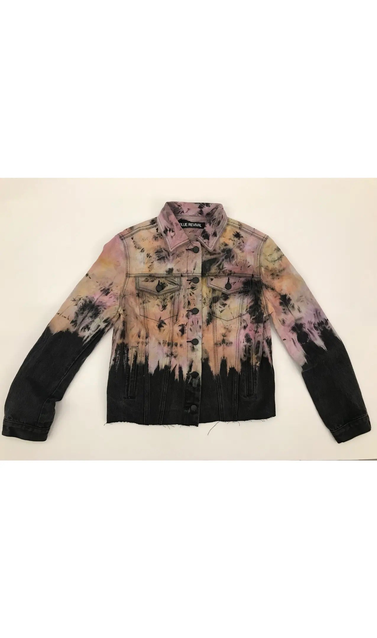 Tie Dye Love! Get ready to look stylish with this tie-dye denim jacket by Blue Revival. This trucker jacket is a one of a kind look that will complement any laid back outfit.
