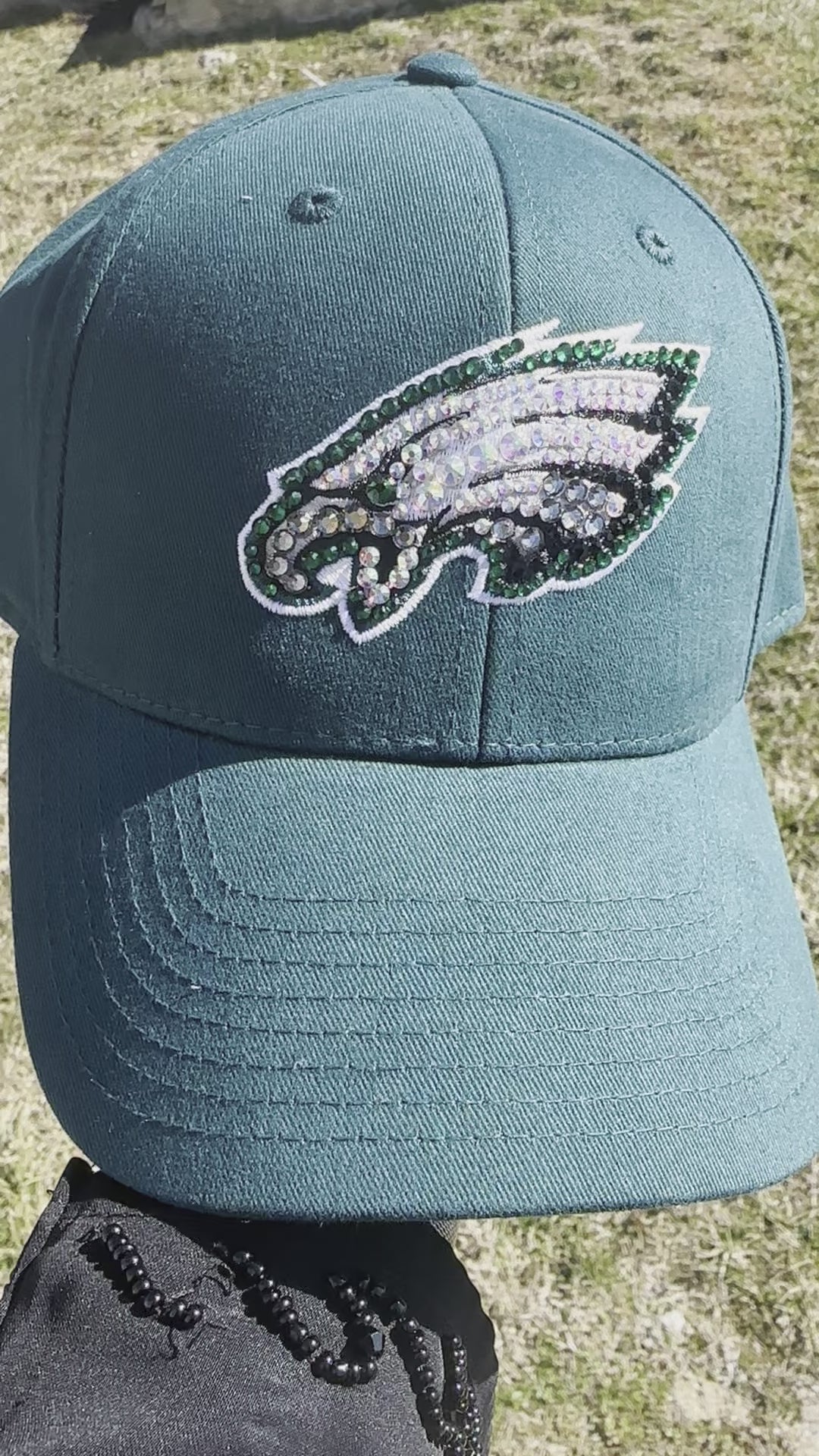 Turning Ordinary Into Extraordinary! This handmade one of a kind Philadelphia Eagles Crystal & Rhinestone Embellished Bling Baseball Cap is the definition of turning ordinary into extraordinary. Embellished with hand-placed rhinestones this cap won't disappoint. Celebrate the electrifying Philadelphia Eagles team. Fly Eagles Fly!