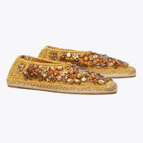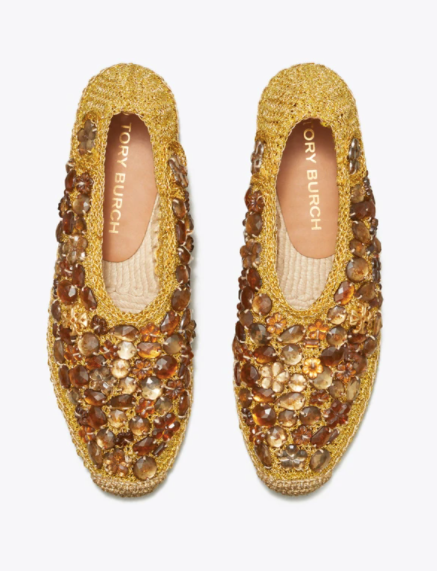 Tory Burch Women's Crochet Crystal Espadrille Flats
